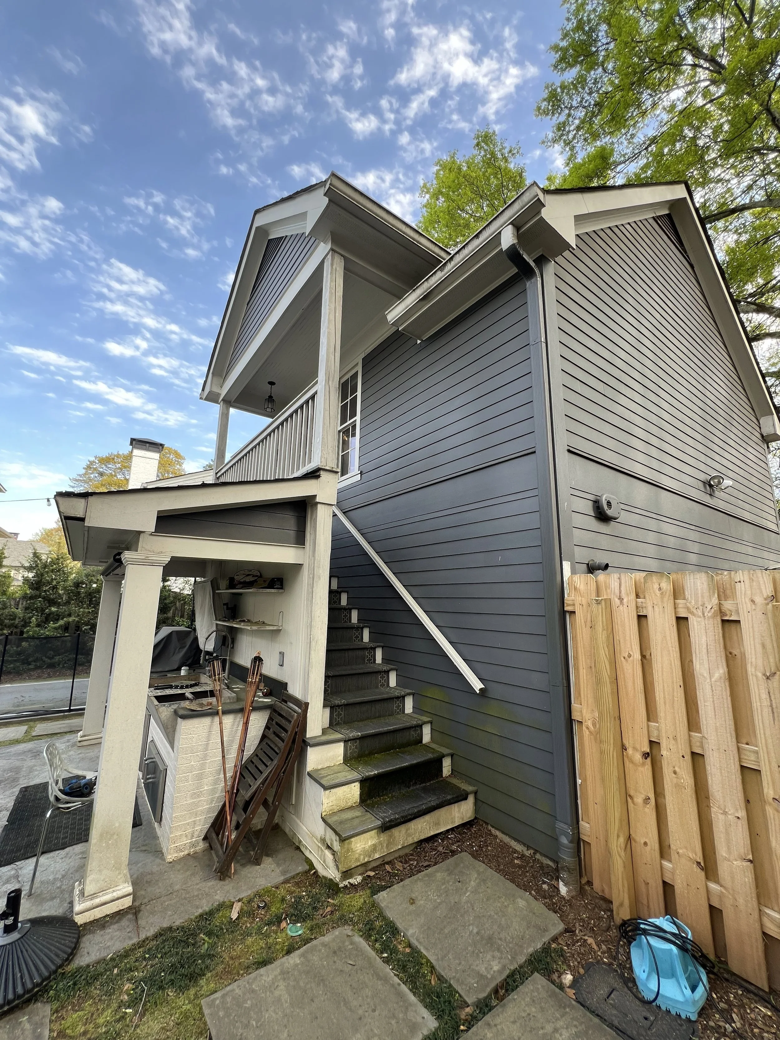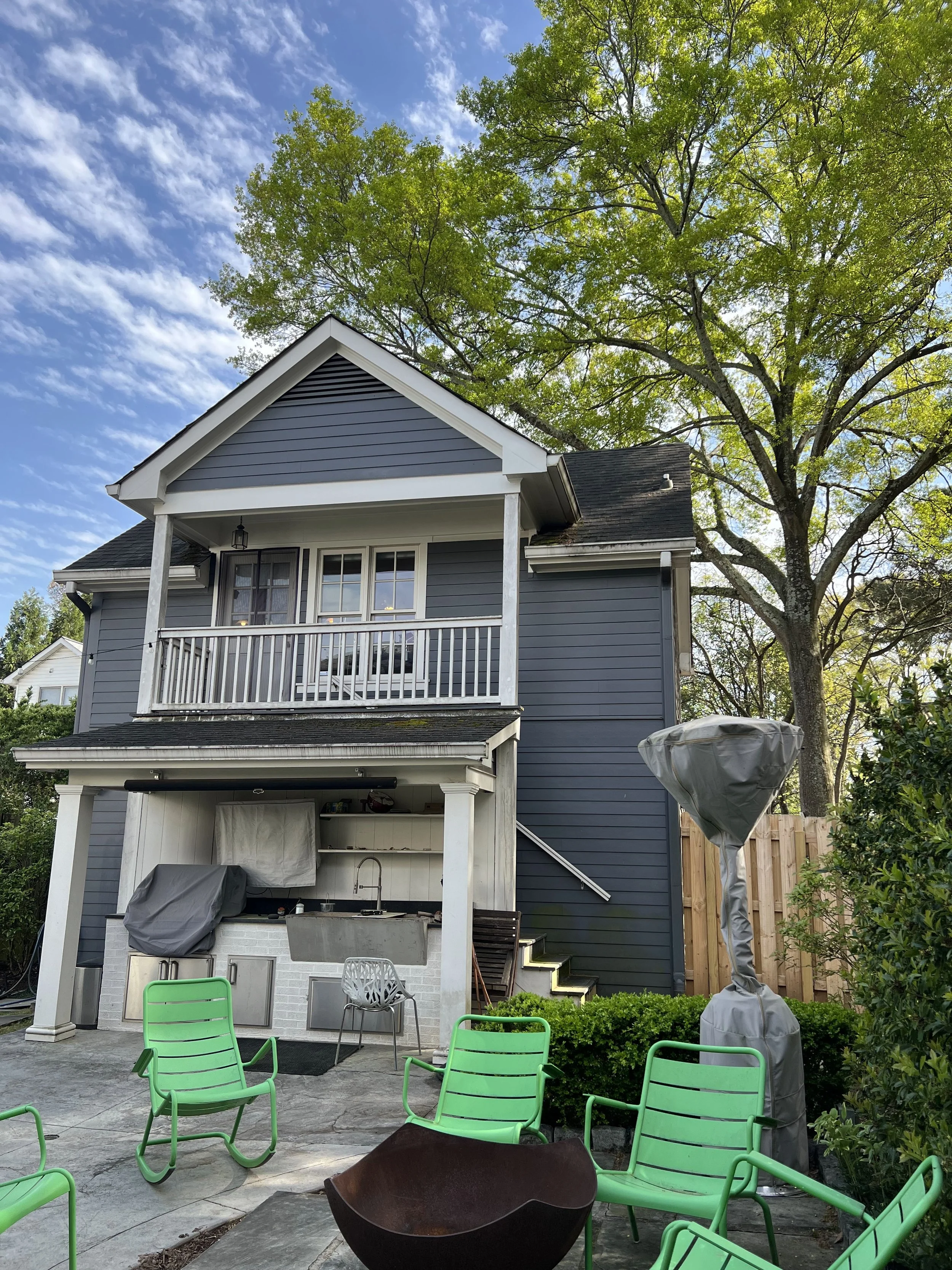 New construction, custom residential pool house and renovated guest house creating a rear courtyard with the existing main house and pool on a double lot in the Midtown neighborhood of Atlanta, Georgia.
