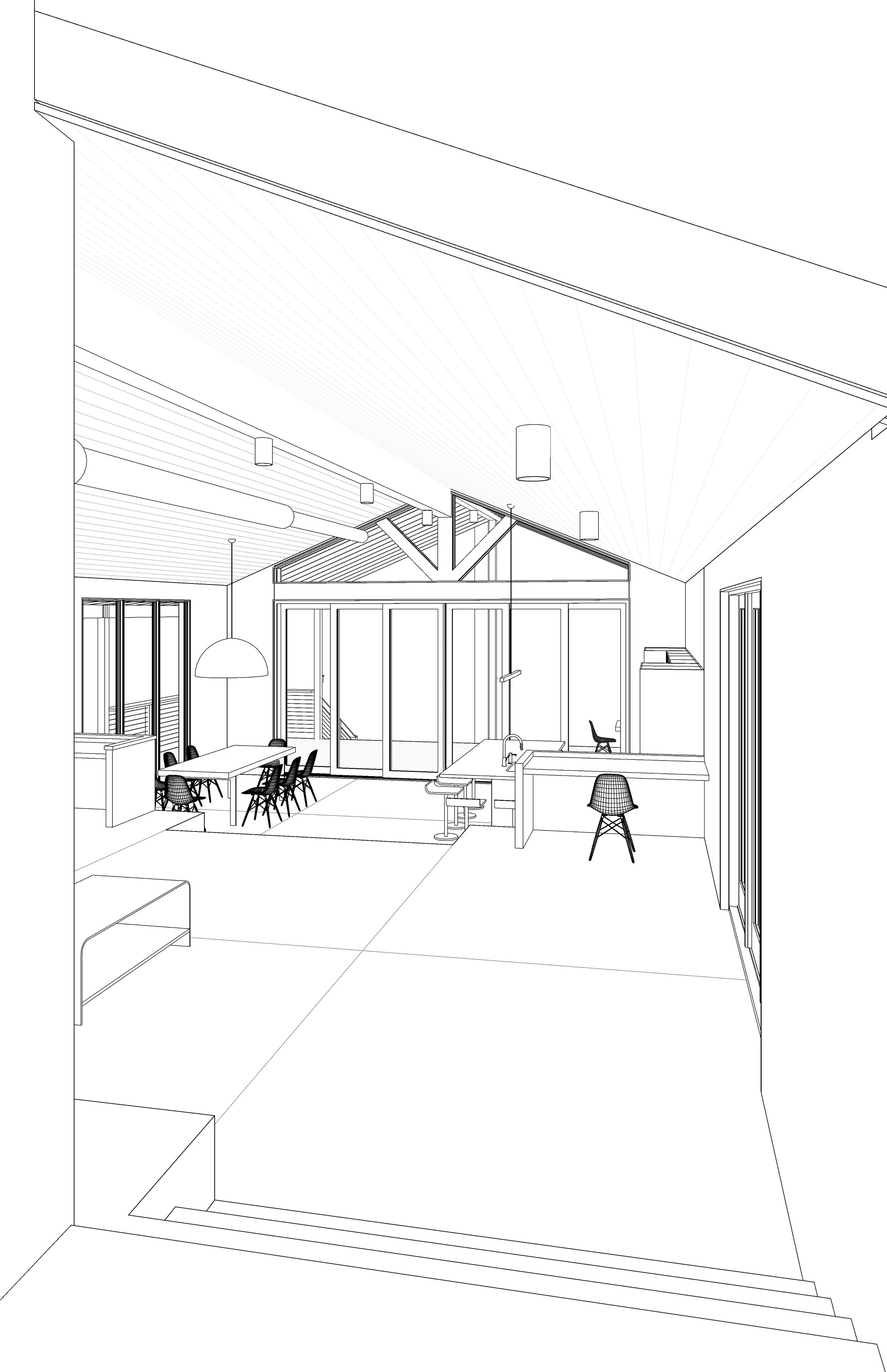 New construction, custom residential house in Tallapoosa, Georgia for escaping the city on weekends. Nestled deep in the woods on 287 acres of private land, this cabin gently rests on the land, stepping the levels of the house with the natural slope of the land toward the lake’s edge.